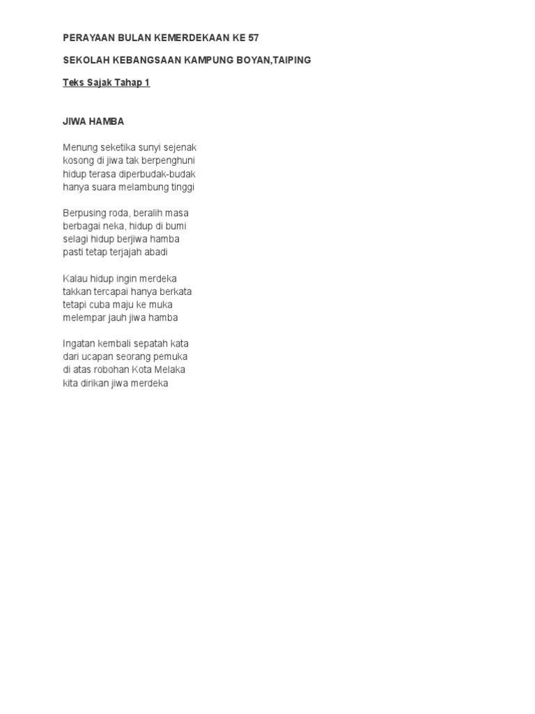 Teks Sajak Perayaan Bulan Kemerdekaan Ke 57 Pdf